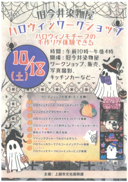 ハロウィンモチーフの手作りが体験できる。 日時 10/18(土)10:0-16:00 場所 旧今井染...