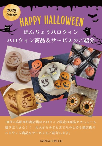 10月の高田本町商店街は、ハロウィン限定の商品やメニューも盛りだくさん! 大人から子どもまでたのしめ...