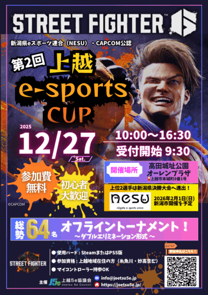 【eスポーツ大会「第2回 上越e-sports CUP」開催&参加者募集!】 上越5e協議会は、『ス...