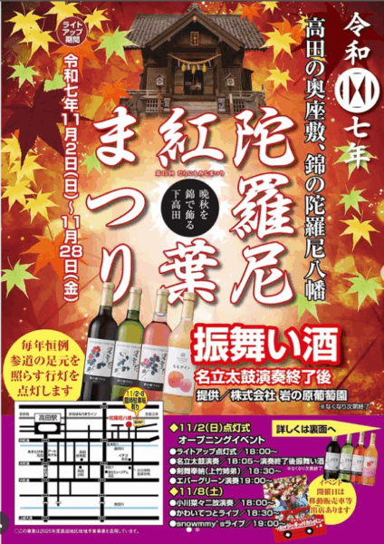 高田の新風物詩、陀羅尼紅葉まつりの季節が今年もやってまいりました。11月2日(日)〜11月28日(金...