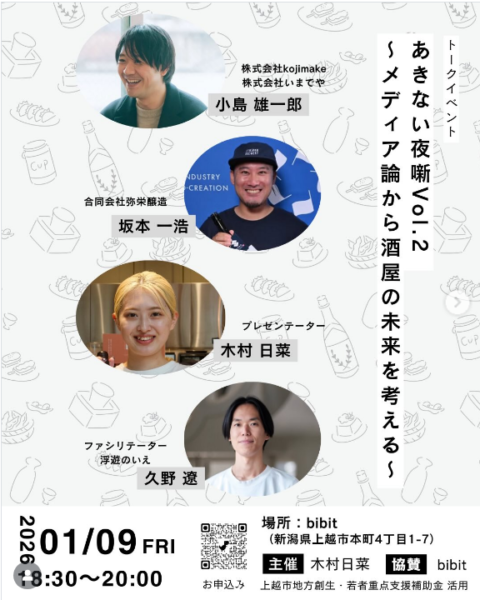 あきない夜噺 Vol.2 〜メディア論から酒屋の未来を考える〜 ・開催日時:2026年1/9(金)...