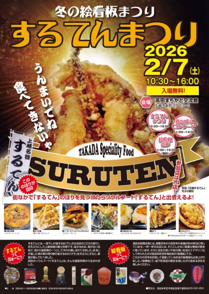 会場及び14の参加店で、高田のソウルフード「するてん」と出会えるよ! 冬の絵看板めぐり するてんまつ...