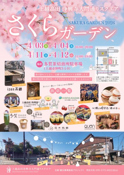 上越高田 浄興寺大門通りスクエア 日時 4月3日・4日 16:00-20:00、4月11日12日 1...