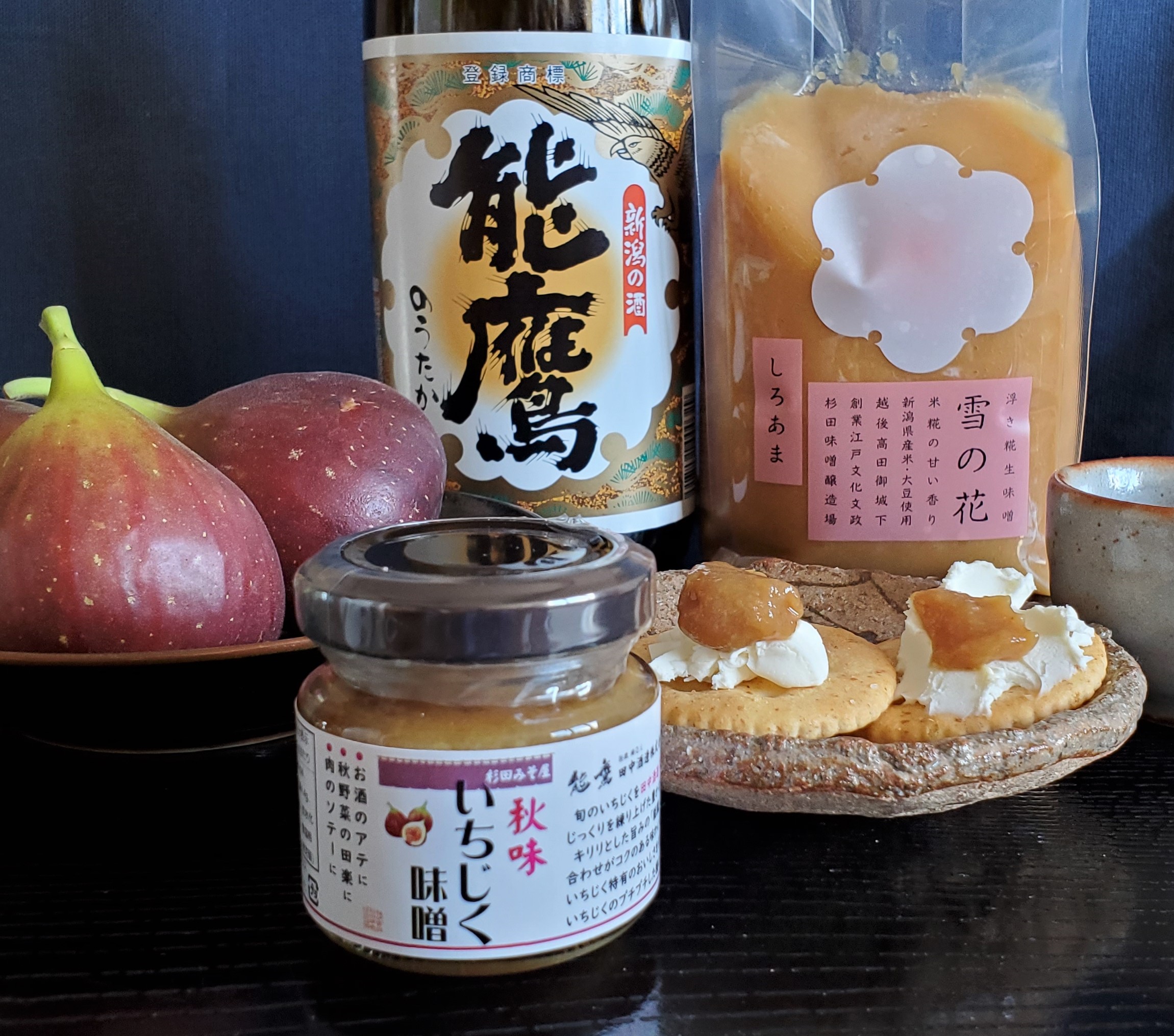 旬のイチジクを田中酒造「能鷹」と杉田味噌「雪の花」でじっくりと練り上げた豊かな味わいの「いちじく味噌」。