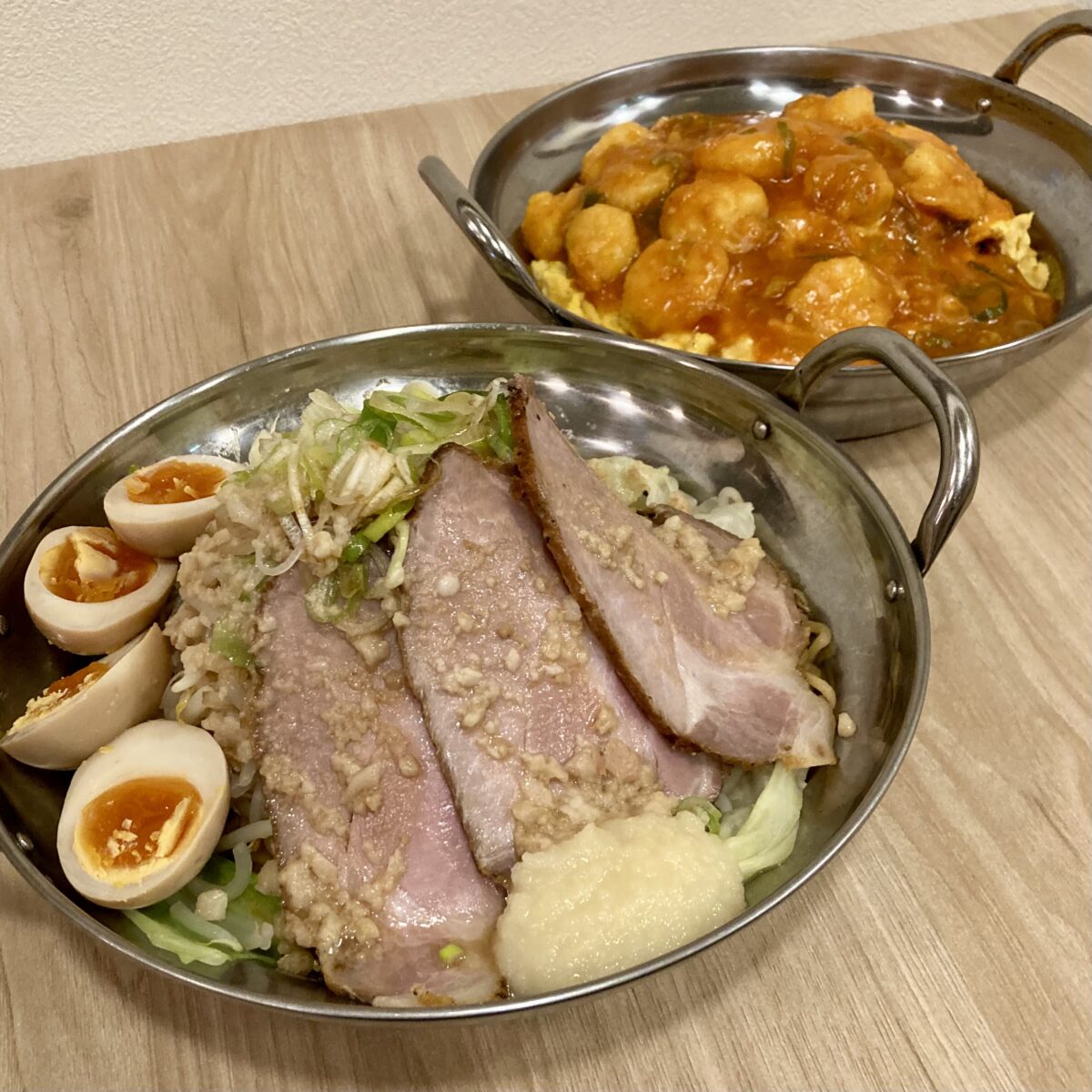 大衆食堂チャオズ「スーパーどどんぱ油そば」税込2,500円/「ビックバンアタックエビチリ天津飯」税込4,500円